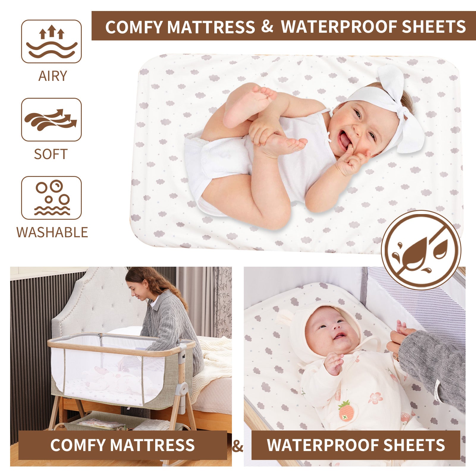 - 【Bassinet with Mattress and Waterproof Sheet】Jestonten Bedside bassinets with a mattress and fitted cute waterproof sheet. In addition, baby bassinet comes with a large storage basket to keep baby's essentials handy for taking baby on the go