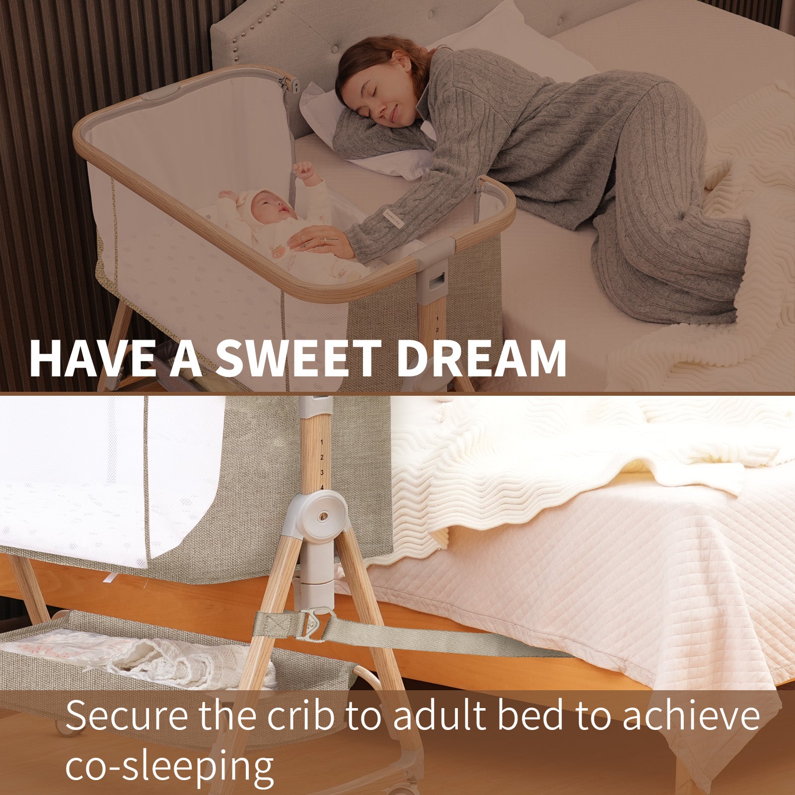 Baby Bassinet, Basinet Bedside Sleeper with Waterproof Bassinet Sheets and Soft Mattress, Safe Adjustable Height Bedside Bassinets with Wheels, Girl/Boy Bassinets, Jestonten (Khaki)
